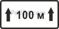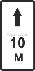 Указывает расстояние от знака до начала опасного участка, места введения соответствующего ограничения или определенного объекта (места), находящегося впереди по ходу движения.